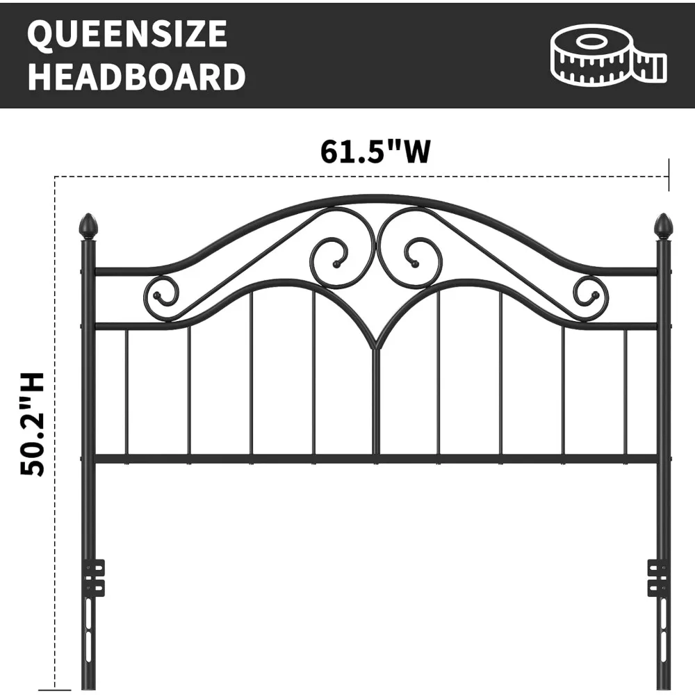 This vintage metal headboard is designed specifically for queen size bed frames.